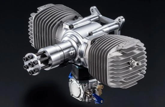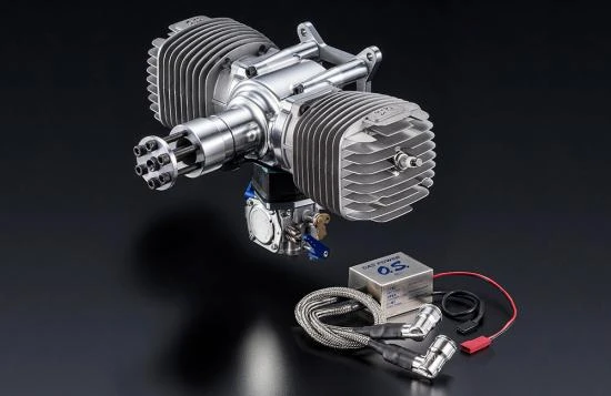 The O.S. GT120T is a 120cc flat twin petrol engine ideally suited to large aerobatic aircraft where only the best will do. The impressive 10ps (9.86hp) power output is perfect to power a 100″ class aerobatic aircraft as used in 3D and IMAC competitions across the world. The crankcase is precision made from aluminium using the latest machining technology OS have on offer. The HS-324A carburettor was designed to produce a special emphasis on throttle response. The GT120T includes a newly designed lightweight ignition unit called the IG-10 to provide a reliable and strong ‘spark’ with easy start ignition timing and protection against backwards running. To make installation simple the mounting dimensions match most popular existing 120cc twin petrol engines.